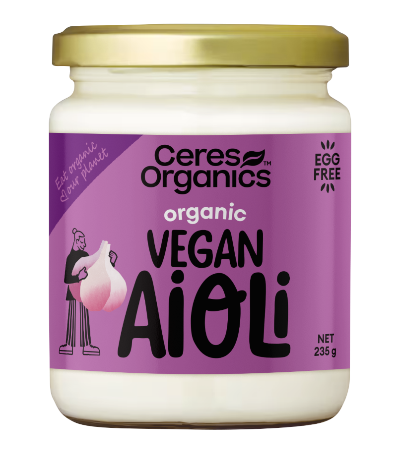 An organic egg-free, vegan aioli that doesn’t disappoint! A true, classic style creamy aioli with a tangy, garlic flavour. It works with any dish. Ideal spread in sandwiches, burgers and wraps. Or as a dip for veggie sticks and chips.