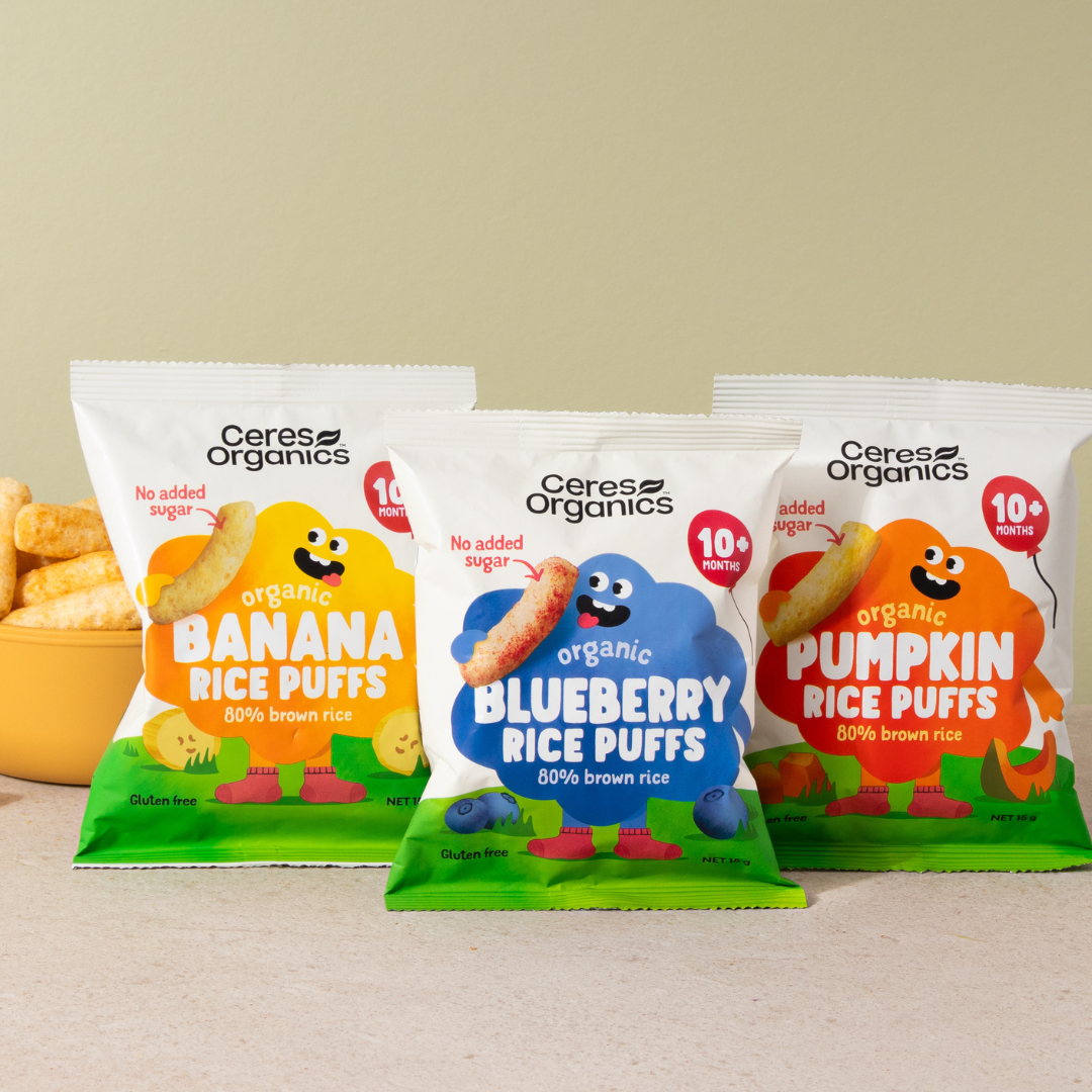 With no added sugar, no artificial flavours, and nothing unnecessary, these puffs are certified organic, gluten free and GE free – just real, honest ingredients for happy first snackers!